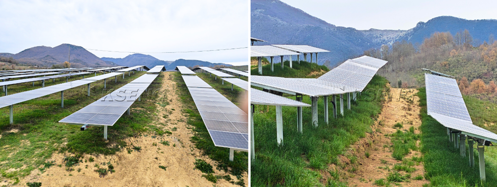 Notably, the project site features extremely challenging terrain, with a 10° slope in both the north-south and east-west directions. Faced with this difficult topography, Kseng Solar’s experienced engineer team designed a custom short-row layout, which not only simplified installation but also maximized energy yield, earning high praise from the client.
